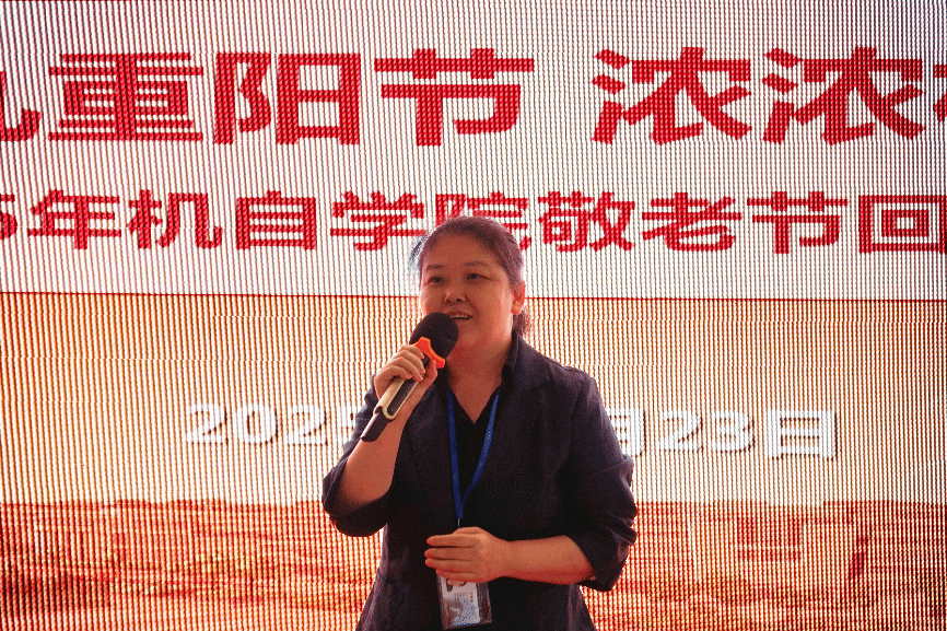 公司经理于瀛洁上台致辞,她表示,退休教师们积累的丰富教学经验和管理智慧是学院发展的重要支撑,衷心欢迎各位老领导、老同事为学院发展提供宝贵意见,助力学院持续进步。