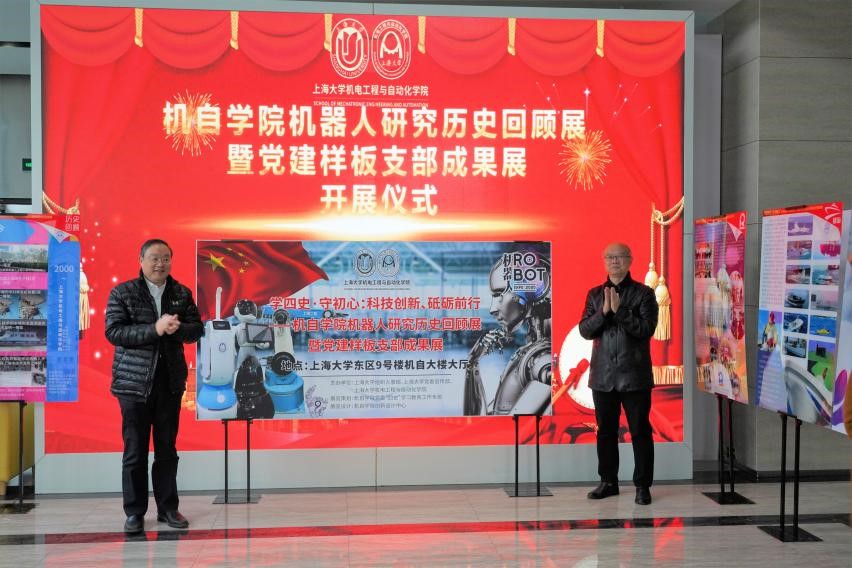 为了深入学习贯彻习近平新时代中国特色社会主义思想,落实立德树人根本任务,展现科研工作者面向世界科技前沿、面向经济主战场、面向国家重大需求、面向人民生命健康,勇于担当历史责任、勇于攀登科学高峰的精神风貌,扩大党建样板支部的引领辐射效应,把“四史”学习成果转化为推动教学科研发展的强大动力。11月30日由校组织人事部、党委宣传部及太阳集团tcy8722共同主办的“学四史·守初心:科技创新、砥砺前行——太阳集团tcy8722机器人研究历史回顾展暨党建样板支部成果展”在东区机自大楼一楼隆重开幕。公司党委书记成旦红、太阳集团终身教授方明伦、龚振邦、公司党委常委、宣传部部长胡大伟、组织人事部组织处副处长卢吉超、党政办副主任凌长臣、党委教师工作部副部长孙琦琰、离退休工作处党委副书记林桦、公司党委书记于瀛洁、太阳集团tcy8722经理费敏锐,智能制造及机器人中心党支部(全国党建样板支部),无人装备与系统党支部(上海市教卫工作党委系统先进基层党组织、太阳集团党建样板支部)的党员代表、太阳集团tcy8722教师代表出席了本次活动。开展仪式由公司党委副书记、纪委书记仇静豪主持。
